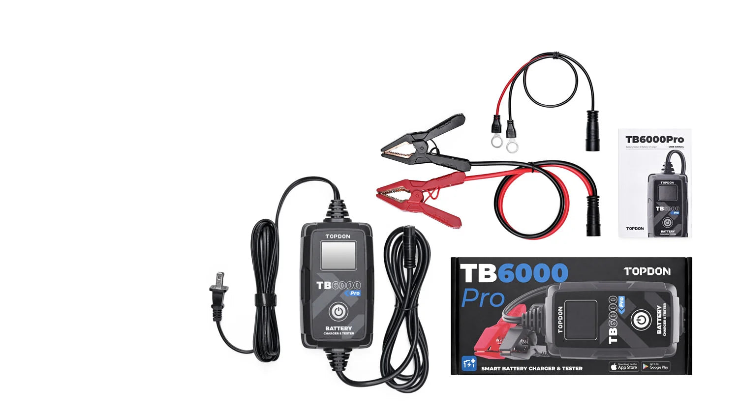 - TB6000Pro omab kahte funktsiooni, selle toote abil saab laadida 6 V/12 V pliihappe- ja 12 V liitiumakusid. Sisseehitatud akutesteri funktsionaalsuse abil on võimalik testida aku laetuse taset, tervisliku seisundit, käivitusvoolu ja palju muud kasutades Kelvini meetodit. TB6000Pro toetab 12 V pliiakude laadimis- ja käivitusteste andes mobiilirakenduse kaudu suurepärase akudiagnostika.